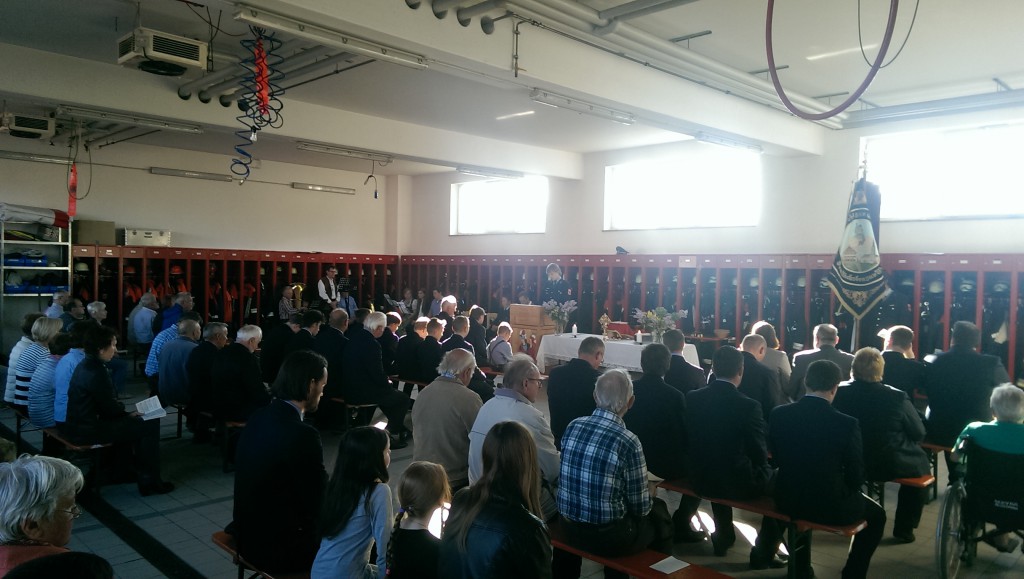 Florianifest zu Ehren unseres Schutzpatrons, dem Hl. Florian, statt. Rund 75 Personen nahmen an der Florianimesse, die von Pfarrer Höllmüller in der Fahrzeughalle zellebriert wurde, teil. Die Bläsergruppe Niederaichbach begleitete den Gottesdienst musikalisch. Nach der Predigt begrüßte Vorstand Kellner die anwesenden Mitglieder und lud zum gemütlichen Kameradschaftsabend mit Brotzeit in den Schulungsraum ein. In einer geselligen Runde wurden noch einige schöne Stunden im Gerätehaus verbracht.