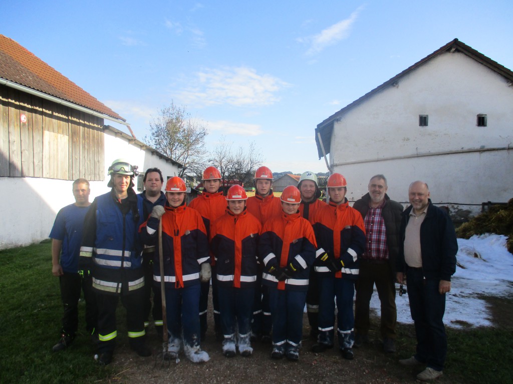 Wörth der 24 Stunden Übungstag. Nach der Begrüßung durch 1. Kommandant Christian Endres und Jugendwartin Gisela Schlüpfinger stand bei dem sogenannten Berufsfeuerwehrtag für die 7 Feuerwehranwärter erst mal eine Theorieschulung auf dem Programm. Gegen 9:45 Uhr kam dann vom Malteser Hilfsdienst aus Niederaichbach ein Rettungswagen (RTW) vorbei. Die RTW-Besatzung erklärte den Jungs ausführlich die Beladung und stand für alle Fragen bereit. Nach einem Weißwurst-Frühstück ertönte gegen 10:45 Uhr der erste Alarmgong. Das Übungsszenario lautete: "Verkehrsunfall mit PKW - eine Person eingeklemmt". So ging es mit Blaulicht und Martinshorn zum Sonnwendfeuerplatz. Dort wurde die eingeklemmte Person mittels Spreizer und Schere befreit und den Rettungsdienst übergeben. Gegen 12:15 Uhr war die Truppe zurück am Gerätehaus und freute sich auf das Mittagesseen. Gerade als der Tisch gedeckt war, kam der nächste Alarm rein. Diesmal ging es in die Lerchenstraße, wo eine Ölspur mit Bindemittel beseitigt werden musste. Rund 30 Minuten später gab es dann wirklich das hochverdiente Gulasch. Nach dem Mittagessen stand etwas Freizeit auf dem Dienstplan. Bei einer gemütlichen Kartenrunde oder dem ein oder anderen harten Match am Billiardtisch wurden wieder Kräfte für den Nachmittag getankt. Gegen 14 Uhr kam unser Kreisbrandmeister (KBM) Uwe Taglinger zu einer Vorstellungsrunde vorbei. Dieser erläuterte die Struktur der Kreisbranddirektion Landshut und erzählte von den vielseitigen Aufgaben eines KBM`s. Um 15 Uhr ertönte wieder ein Alarm mit der Durchsage: "Kleinbrand im Freien". Auf dem landwirtschaftlichen Anwesen der Familie Brückl brannte ein ca. 8x5m großer Haufen mit Holz- und Strohabfällen. Mit drei C-Rohren und unter Zugabe von Schaummittel wurde der Brand schnell unter Kontrolle gebracht. Nach der Kontrolle durch die Wärmebildkamera konnte nach ca. 25 Minuten Feuer aus gemeldet werden. Sicherheitshalber wurde noch ein Schaumteppich mit dem Mittelschaumrohr über die Brandstelle gelegt. Diese Übung wurde von einigen Zuschauern, unter anderem von 1. Bürgermeister Stefan Scheibenzuber und 2. Bürgermeister Ludwig Thoma, beobachtet. Nach den Dankesworten und dem großen Lob der Bürgermeistern wurde noch zum Gruppenfoto aufgestellt. Als man um 16:30 Uhr zurück am Feuerwehrhaus war, wurden die Fahrzeuge wieder mit neuen Schläuchen bestückt und zur nächsten Ausbildung angetreten. Retten aus Höhen und Tiefen lautete das Thema der Übung. So wurde zuerst der Umgang mit der Schleifkorbtrage geschult, bevor in der Fahrzeughalle der Einsatz des Abseilgerätes "Rollgliss" geübt wurde. Nachdem sich der letzte Auf- und Abgeseilt hatte, lag auch schon das Fleisch auf dem Grill. Während des Essens wurde die Sportschau im Fernsehen verfolgt. Kurz nach dem Essen fuhr das nächste Highlite in den Hof der Feuerwehr. Aus Landshut nahm sich eine Streifenwagenbesatzung der Polizei die Zeit und stellte das grüne Einsatzfahrzeug zur Besichtigung bereit. Auch hier wurden alle Fragen der Jugendlichen bestens beantwortet. Kurz nach dem gemeinsamen Gruppenbild mussten die Polizisten allerdings schon wieder zu einem Einsatz. Gegen 20 Uhr besuchte uns nochmals 2. Bürgermeister und Heimatdichter Ludwig Thoma. Dieser erläuterte seine selbstgeschriebenen Gedichte und gab den Jungs bayerische Mundart mit auf dem Weg. Um 20:45 Uhr klingelte schon wieder der Alarmgong und diesmal ging es in eine Autowerkstatt, wo ein Arbeiter in eine Grube gefallen war. Mit der Schleifkorbtrage und unter Mithilfe der Steckleiter war der verletzte Arbeiter schnell gerettet. Als Belohnung gab es gegen 22 Uhr eine Runde Milchshake von Mc Donalds. Während sich die hälfte der Jugendfeuerwehrler schonmal in ihr Schlaflager begab, bezog der Rest der Truppe den Jugendraum und tobte sich noch bei Billiard, Kicker und Darts aus. Gegen Mitternacht wollte ein Teil der Mannschaft noch eine Nachtausbildung halten. So galt es eine Person unter einem PKW mit Hebekissen zu befreien. Auch diese Aufgabe wurde hervorragend abgearbeitet. Nachdem die meisten Jungs schon in ihren Betten schlummerten, ertönte der Alarmgong um 1:50 Uhr ein weiteres mal. "Katze auf Dach" schallte es aus dem Lautsprecher. So konnte nach rund 10 Minuten das Tier mit der Steckleiter gerettet und dem Besitzer übergeben werden. Nach einem kleinen Mitternachtssnack war dann gegen 3 Uhr wirklich Nachtruhe angesagt. Diese wurde aber schlagartig um 6:20 Uhr vom Alarmgong wieder beendet. "Personensuche im Industriegebiet" lautete der Auftrag für die Feuerwehr. In drei Suchtrupps aufgeteilt, wurde mit Handscheinwerfern und der Wärmebildkamera die hilflose Person gesucht. Nach rund 30 Minuten wurde über Funk die Meldung "Person gefunden" abgegeben. Diese wurde aus dem unwegsamen Gelände mit einer Trage zum Sammelplatz befördert. Als man um 7:15 Uhr wieder am Feuerwehrhaus war, wurde das Schlaflager abgebaut und der Übungstag endete um 8 Uhr mit einem ordentlichen Frühstück und einem Abaschlußgespräch.