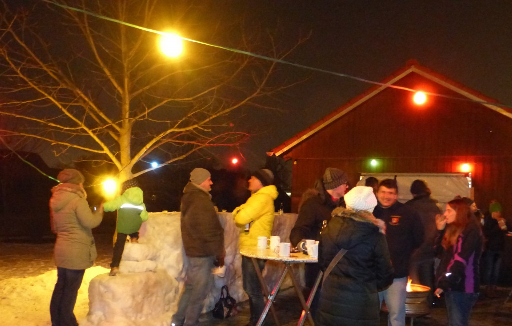 das diesjährige Winterfest zu Gunsten unserer Jugendfeuerwehr statt. Ab 17 Uhr kamen die ersten Gäste vorbei. Bis 1 Uhr konnten rund 130 Besucher bei zweistelligen Minustemperaturen gezählt werden. An mehreren Stehtischen, einer Schneebar und einem Lagerfeuer konnte der erworbene Glühwein, Kinderpunsch, Bier und die 1/2 Meter-Bratwurstsemmeln sowie selbstgebackenes Gebäck verspeist werden. Für die Kältemuffel stand in der Gartenhütte ein beheizter Bereich zur Verfügung. So wurden bis tief in die Nacht hinein interessante und lustige Gespräche geführt.